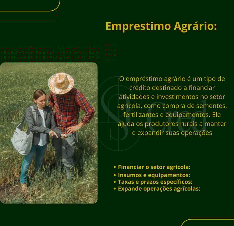 O crédito agrário, também conhecido como crédito rural, é um empréstimo destinado ao setor agropecuário. Ele serve para financiar as operações do campo, desde o plantio até a comercialização dos produtos.